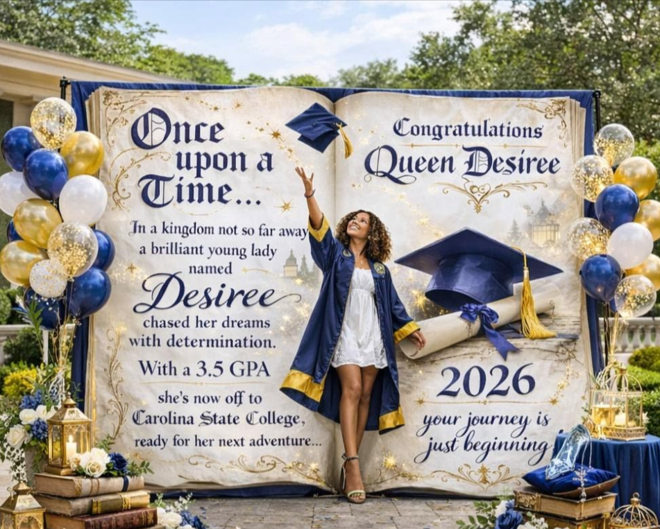 The Concept: A visual narrative across several banners showing the graduate’s journey. Start with a kindergarten photo, then a middle school memory, and end with their cap and gown portrait.